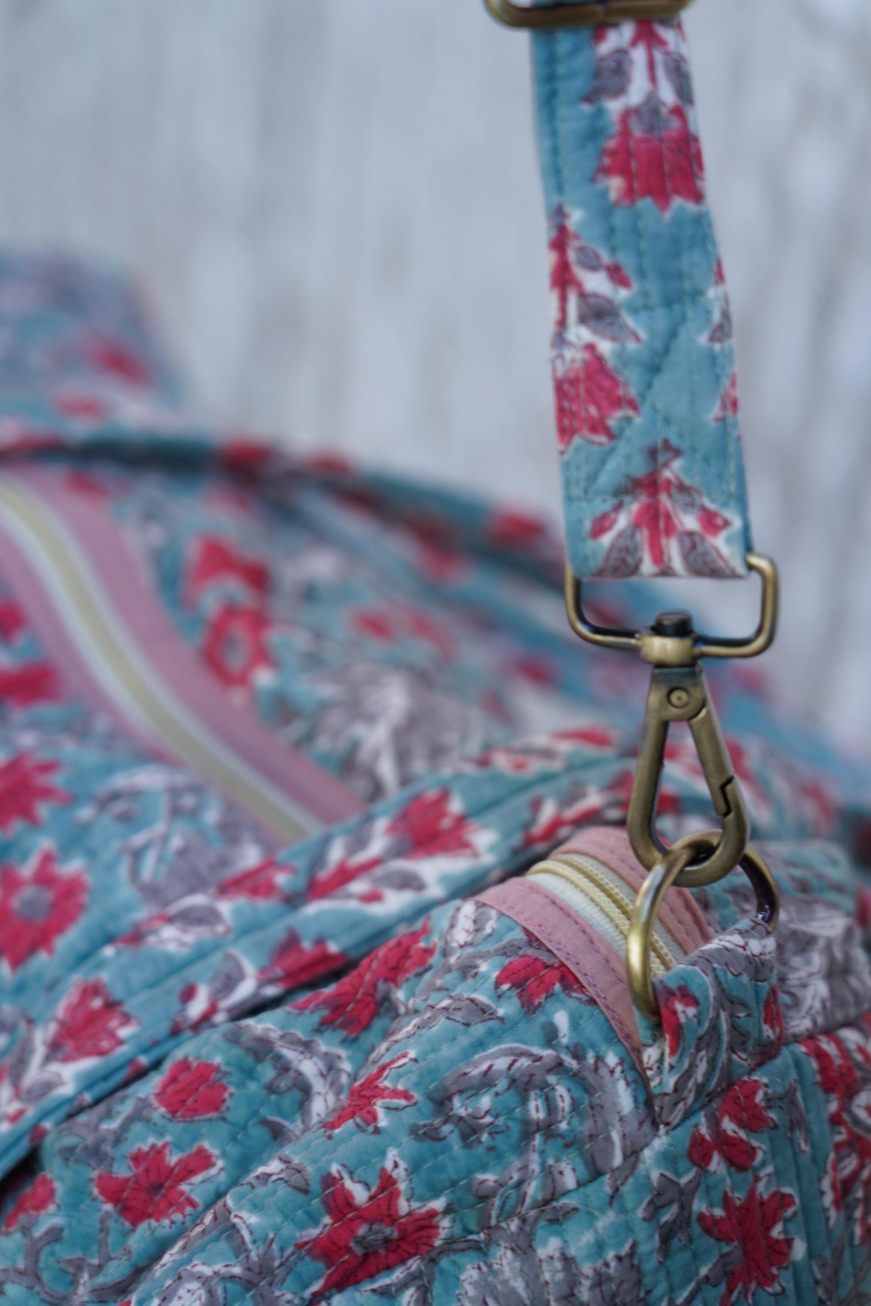 Coloridos bolsas de algodón hechos a mano por sastres de la zona de Rajastan, India. Las telas son impresas mediante la técnica del block printing, o sea dar color a textiles utilizando bloques de madera xilografiados. Esta técnica es mundialmente conocida y muy característica de esta región de la India.
