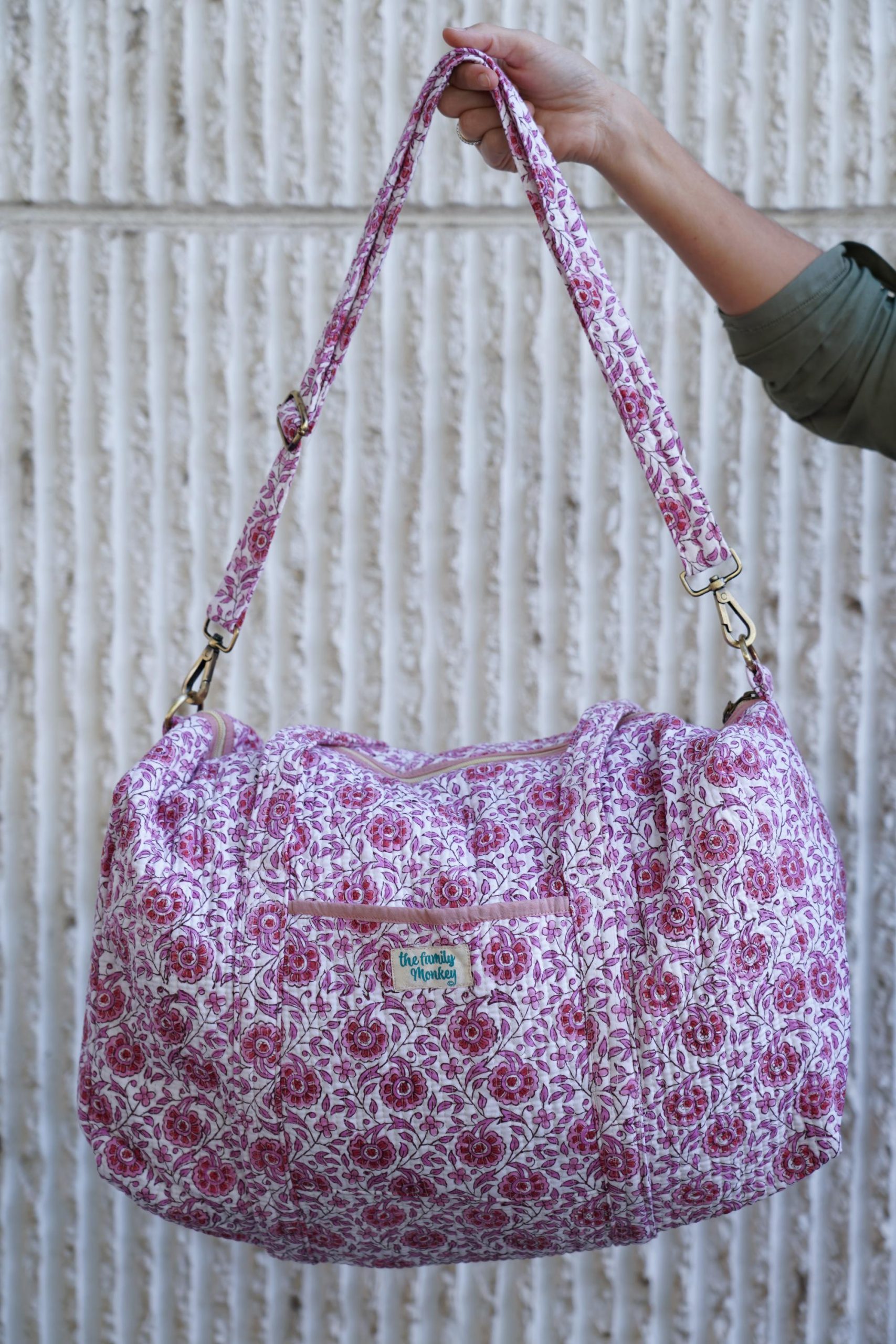 Coloridos bolsas de algodón hechos a mano por sastres de la zona de Rajastan, India. Las telas son impresas mediante la técnica del block printing, o sea dar color a textiles utilizando bloques de madera xilografiados. Esta técnica es mundialmente conocida y muy característica de esta región de la India.