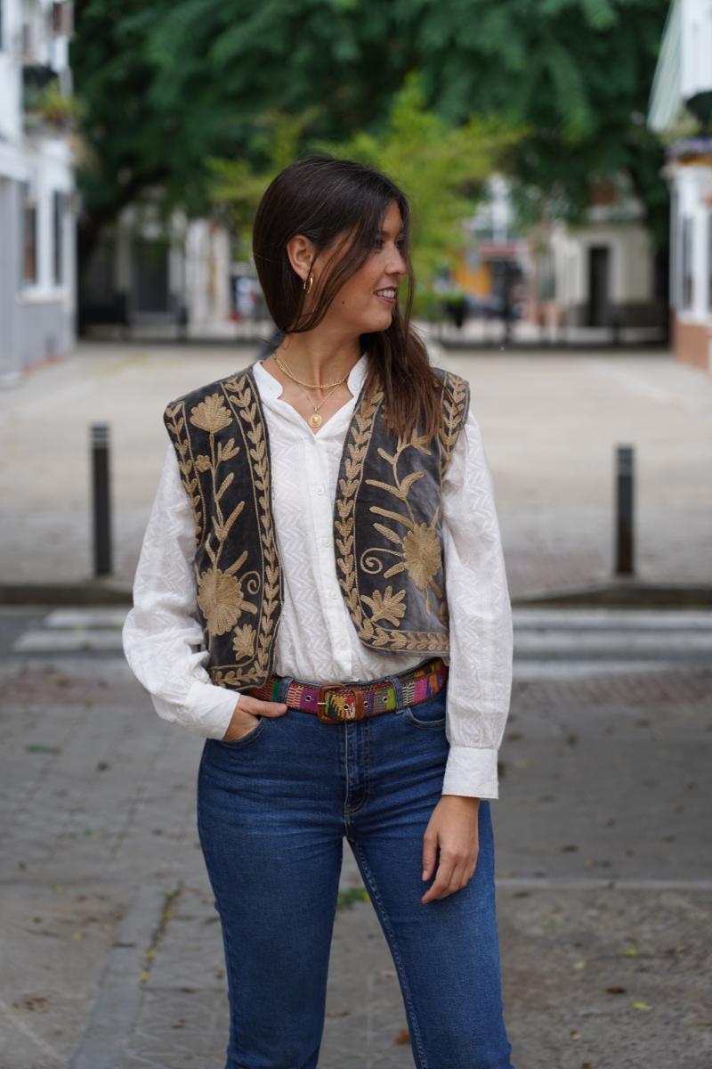 Cada chaleco se confecciona en talleres pequeños de India, donde artesanos la bordan con cuidado y precisión. El resultado es una prenda diferente, con buenos acabados y que queda genial puesto.