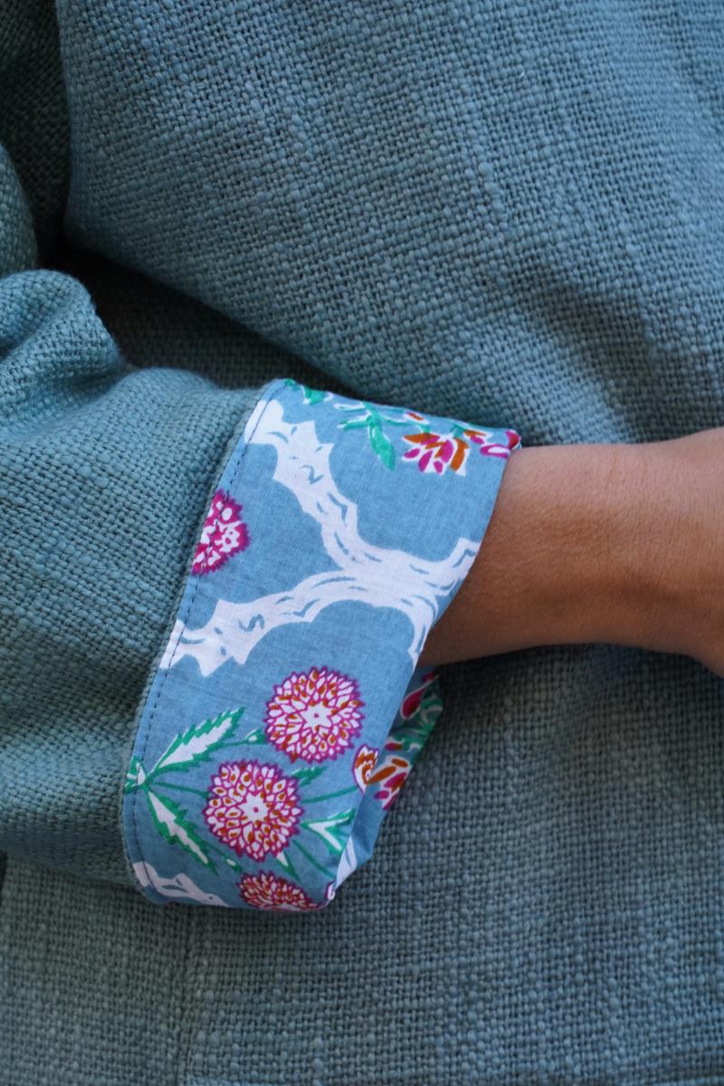 Tiene forro interior estampado que le da un toque especial cuando remangas las mangas o la llevas abierta. Es cómoda, práctica y muy fácil de combinar.