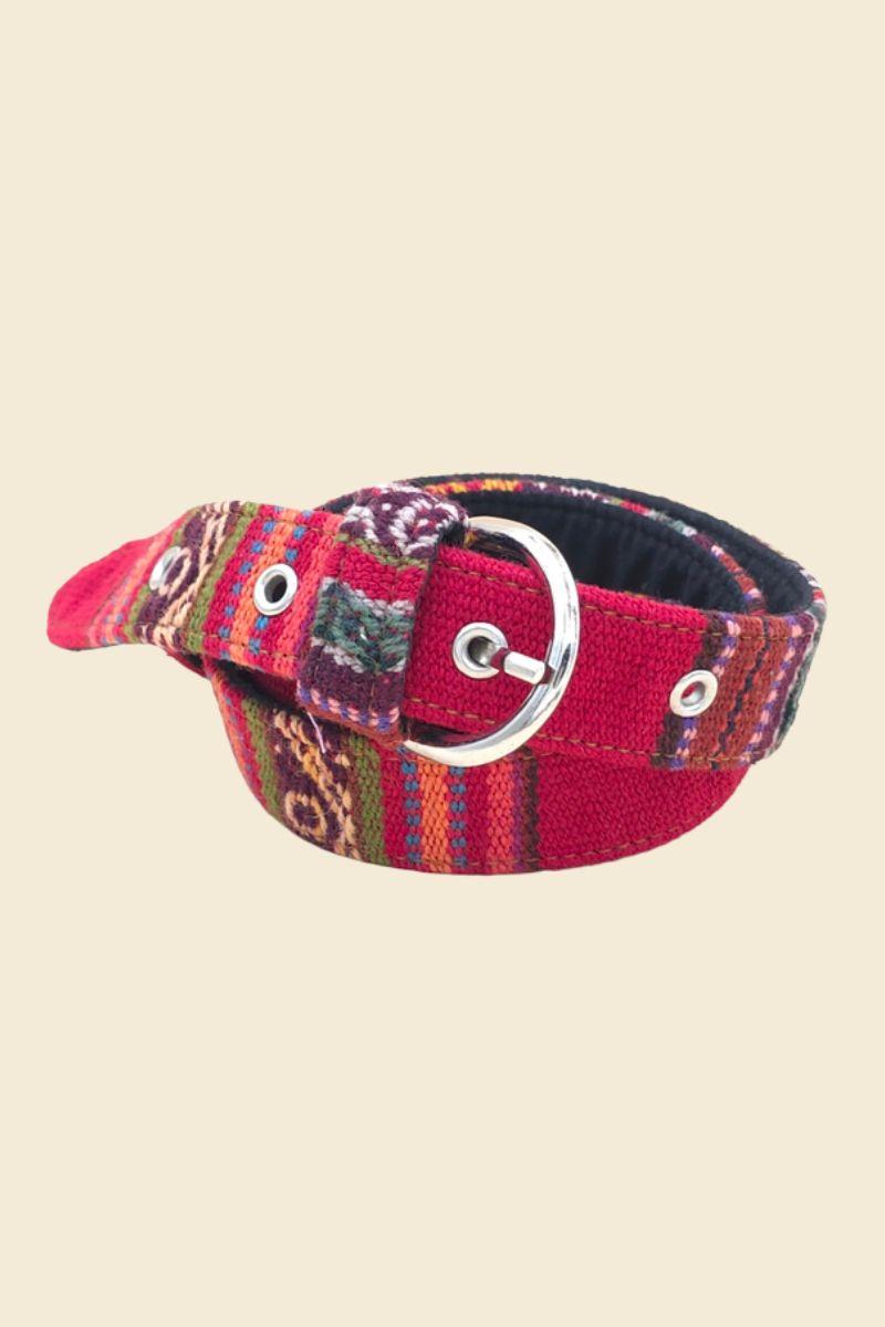 El cinturón aguayo es un accesorio práctico y resistente que añade color y personalidad a cualquier look. Está elaborado siguiendo técnicas textiles tradicionales andinas, donde los tejidos aguayo destacan por sus franjas y combinaciones de colores.