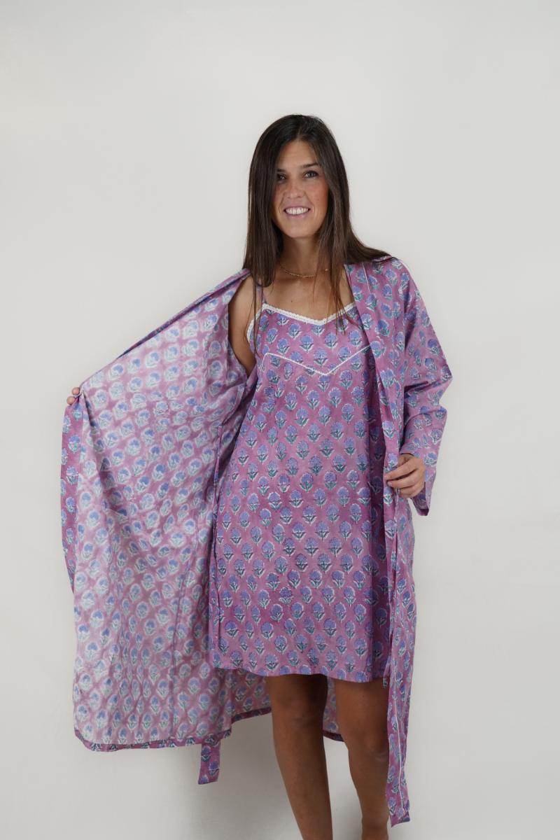 Este kimono es perfecto para estar en casa con estilo o para usar como sobrecamisa en los días de calor. Ligero, suave y con un estampado artesanal que lo hace único.