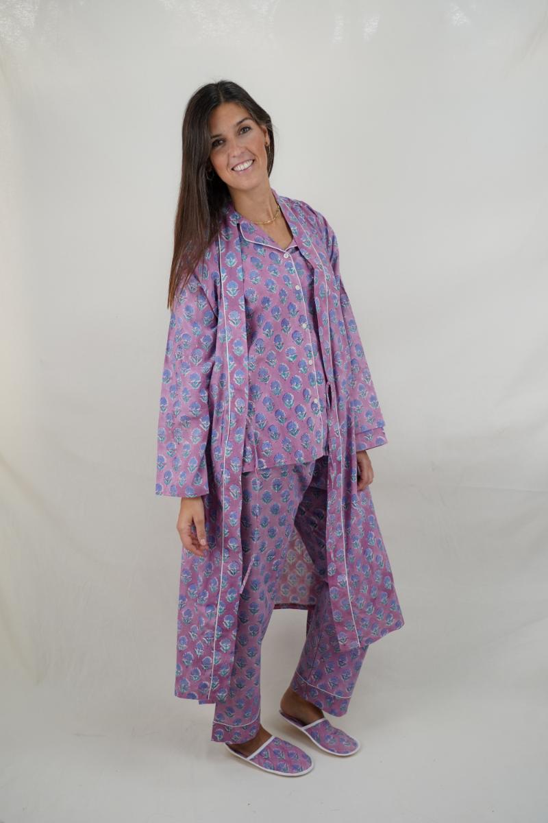 Cada kimono está confeccionado por sastres locales utilizando telas estampadas a mano con la técnica tradicional del block print. Esto garantiza un diseño único y una calidad excepcional.