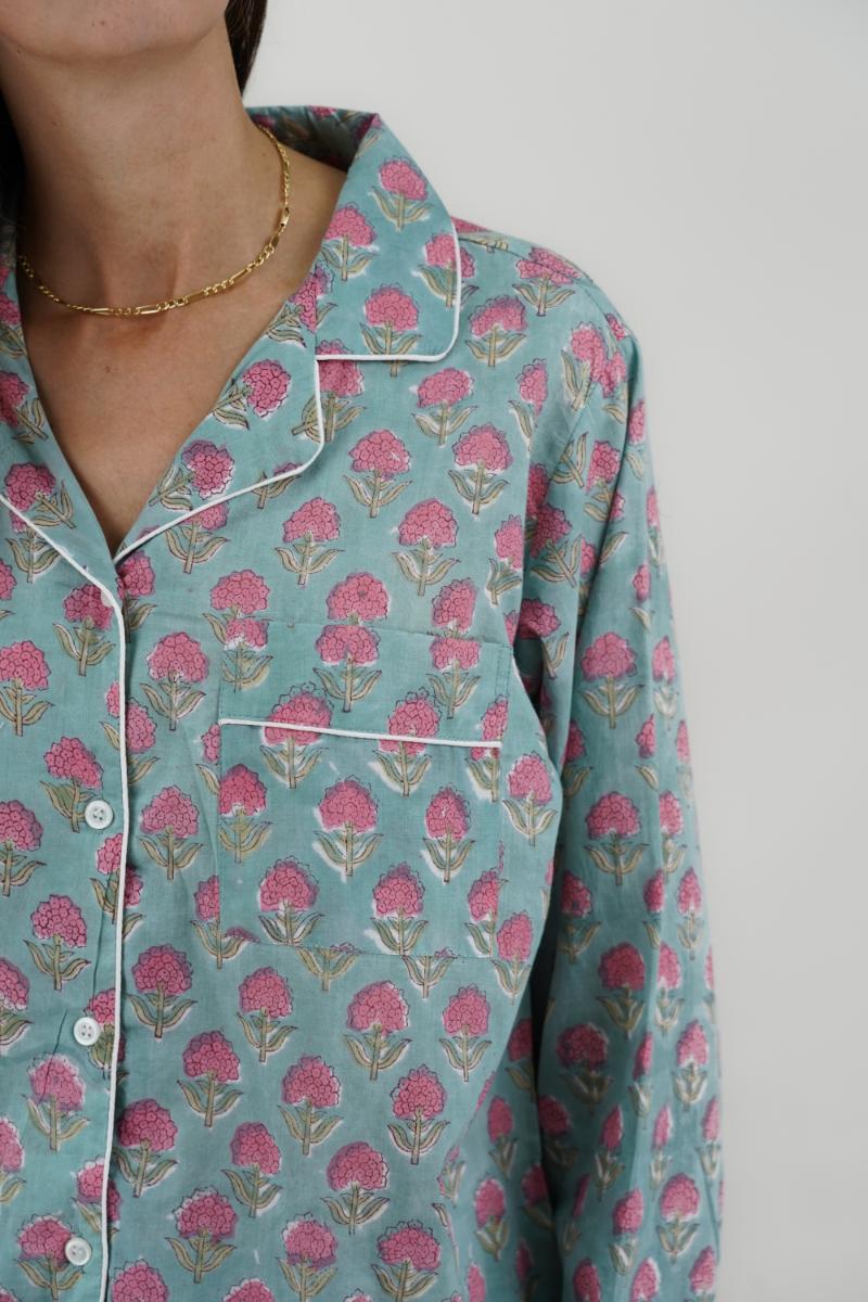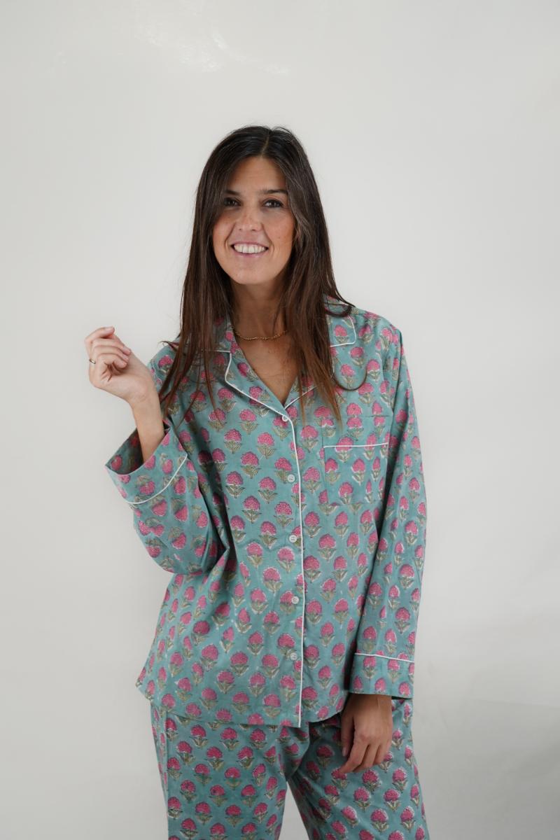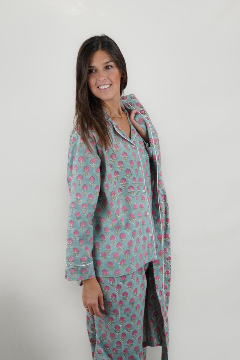 Pijama largo de 100% algodón para mujer – hecho a mano, colorido, fresco y elegante.