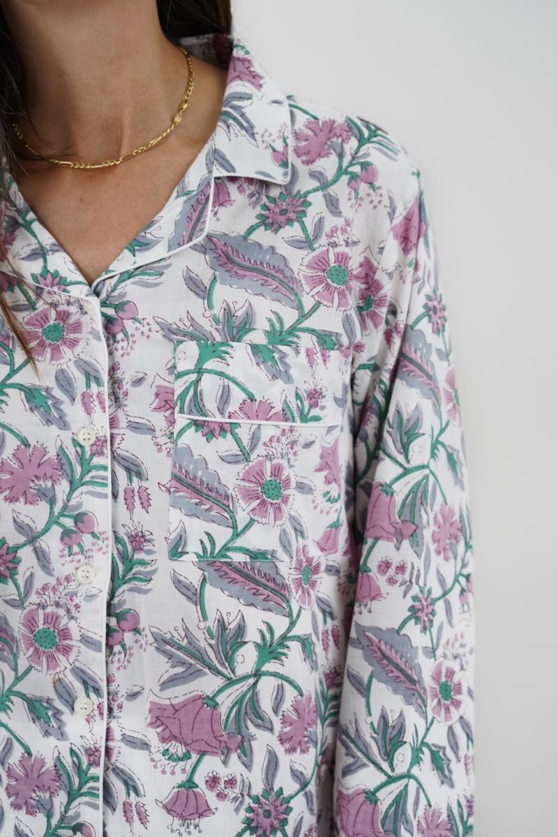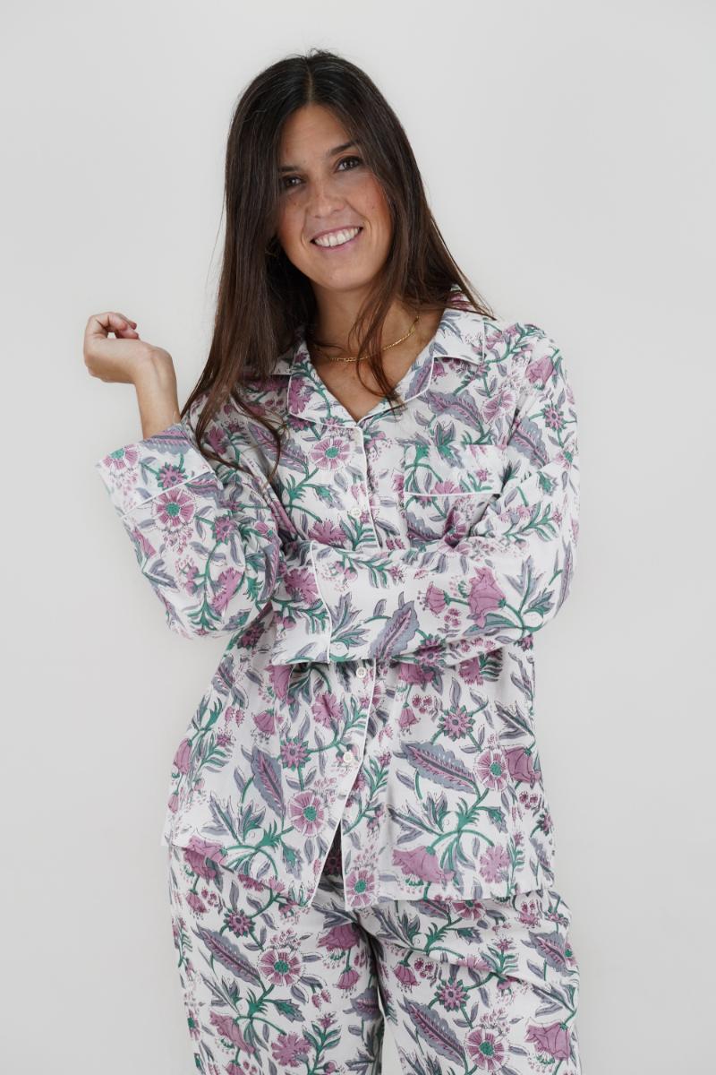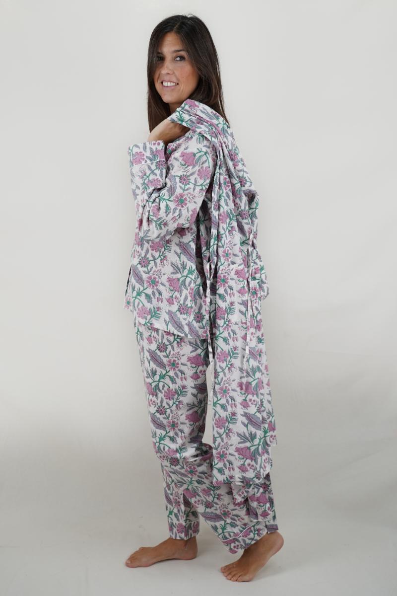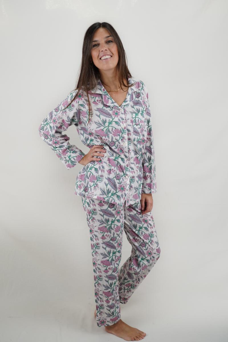 Pijama largo de 100% algodón para mujer – hecho a mano, colorido, fresco y elegante.