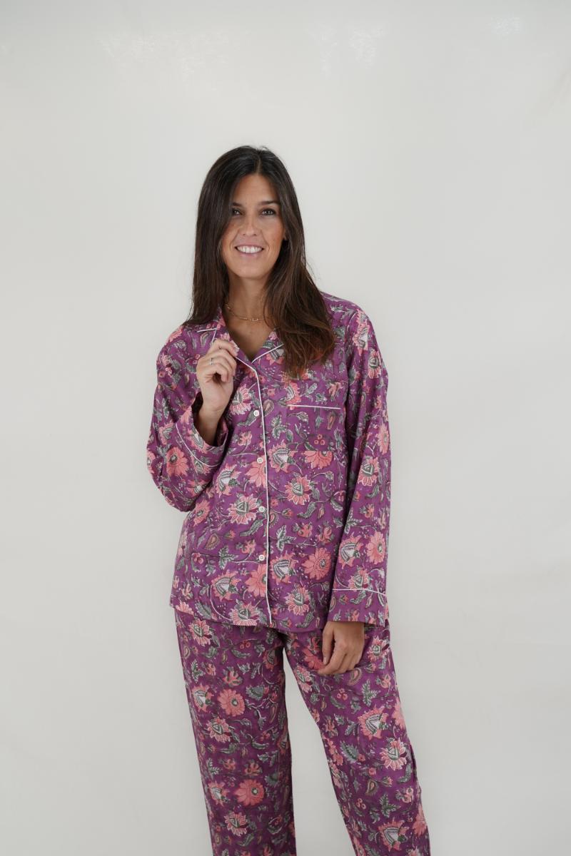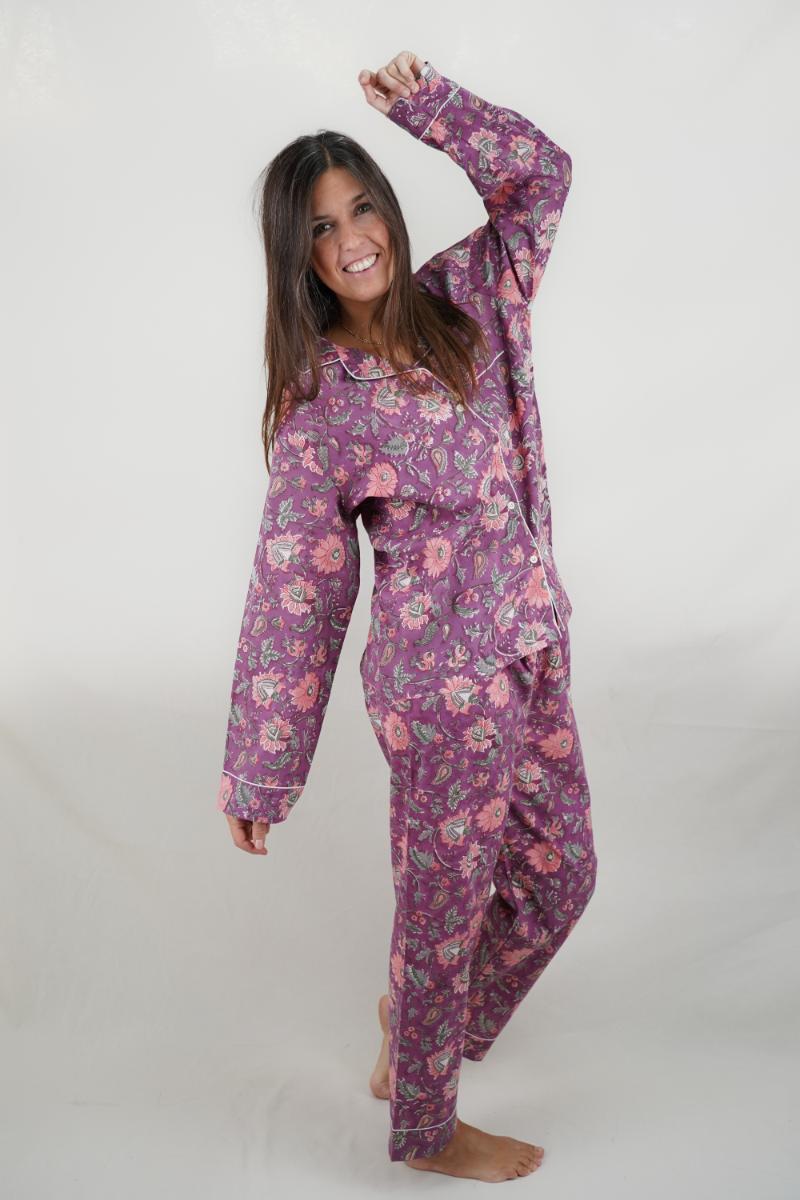 Pijama largo de 100% algodón para mujer – hecho a mano, colorido, fresco y elegante.
